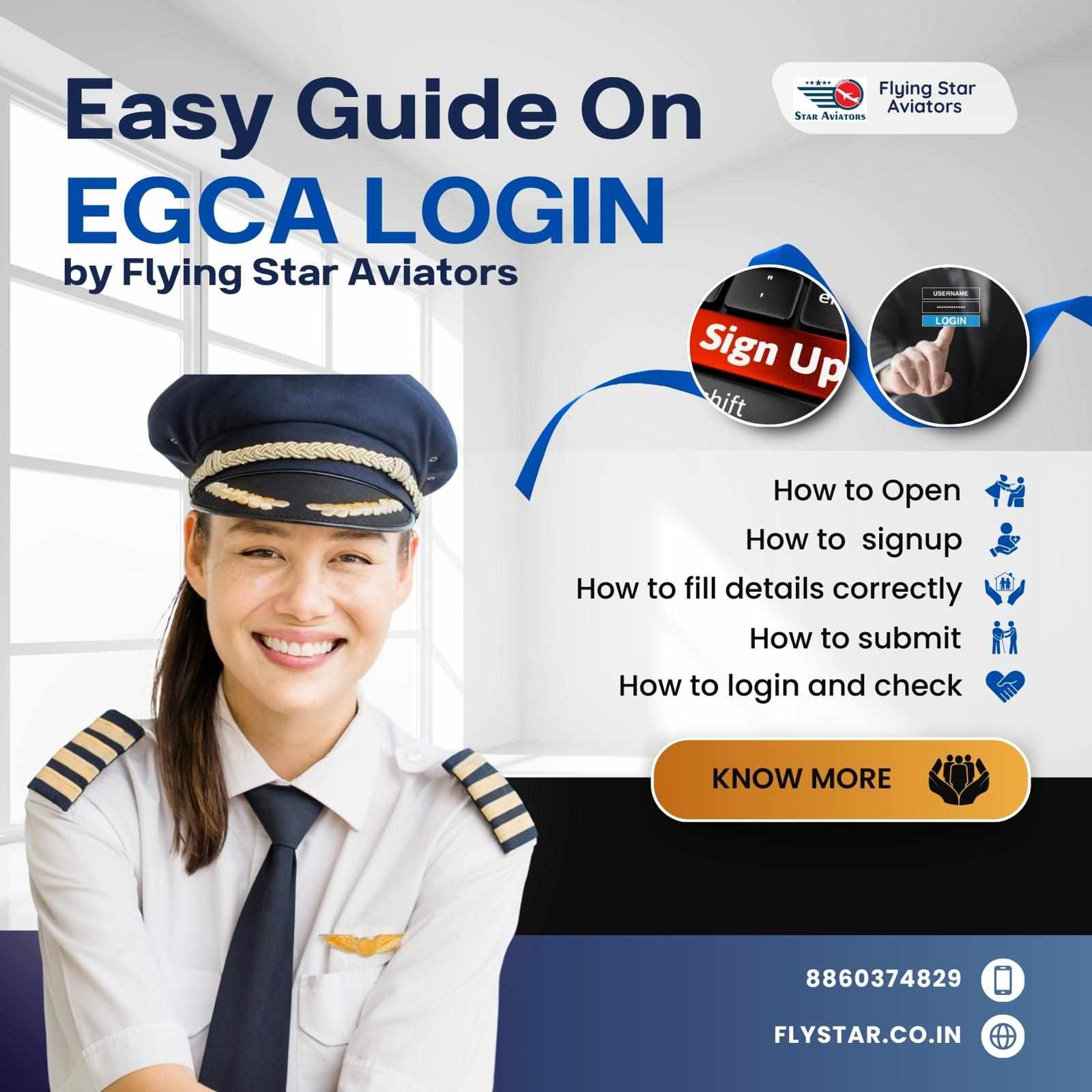The eGCA (e-Governance of Civil Aviation) portal is a user-friendly platform designed by the Directorate General of Civil Aviation (DGCA) to make aviation-related processes seamless and efficient. Whether you're a pilot, air hostess, or aviation enthusiast, this guide by Flying Star Aviators will help you navigate the eGCA login process with ease. Follow these simple steps to get started: